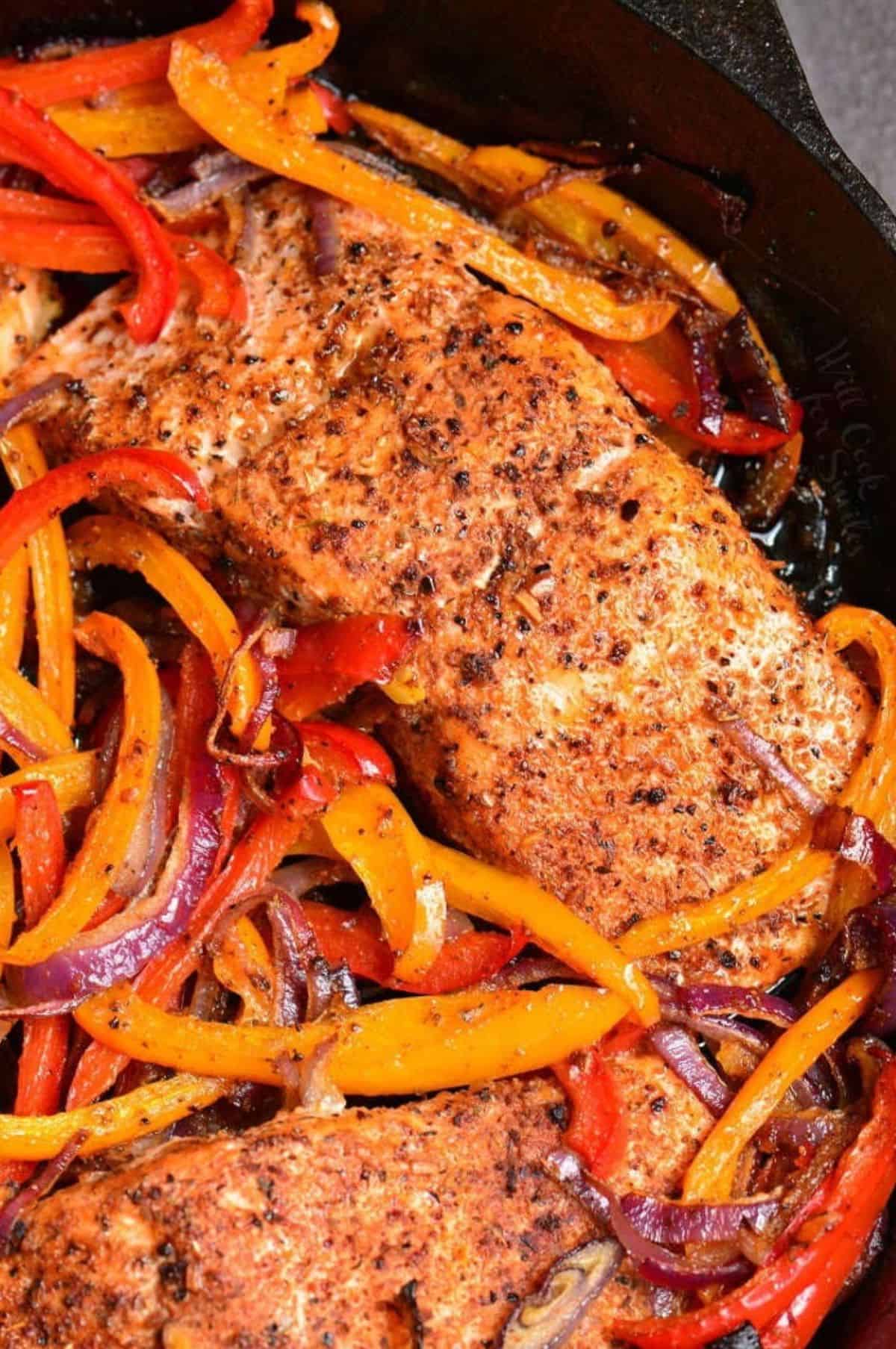 I made this recipe tonight and I and the family loved it ! Peppers, onion and Salmon seemed like it would be a home run and it was . I’ve loved Salmon since the first time I had as a kid on Kodak Island in Alaska. I will absolutely be making this recipe many more times for sure . Thank you so much for sharing your recipe with us.