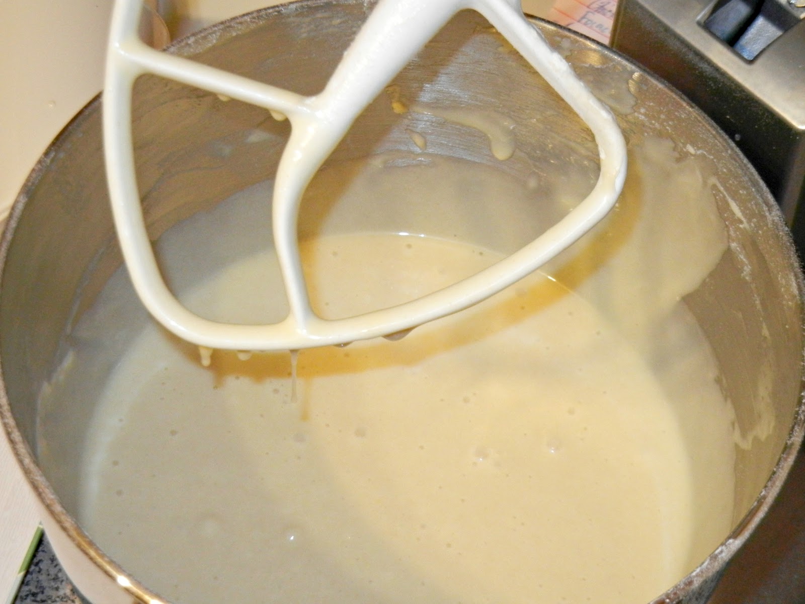 2. Slowly pour in the cream of coconut, while the mixer s running on medium. Beat until combined.