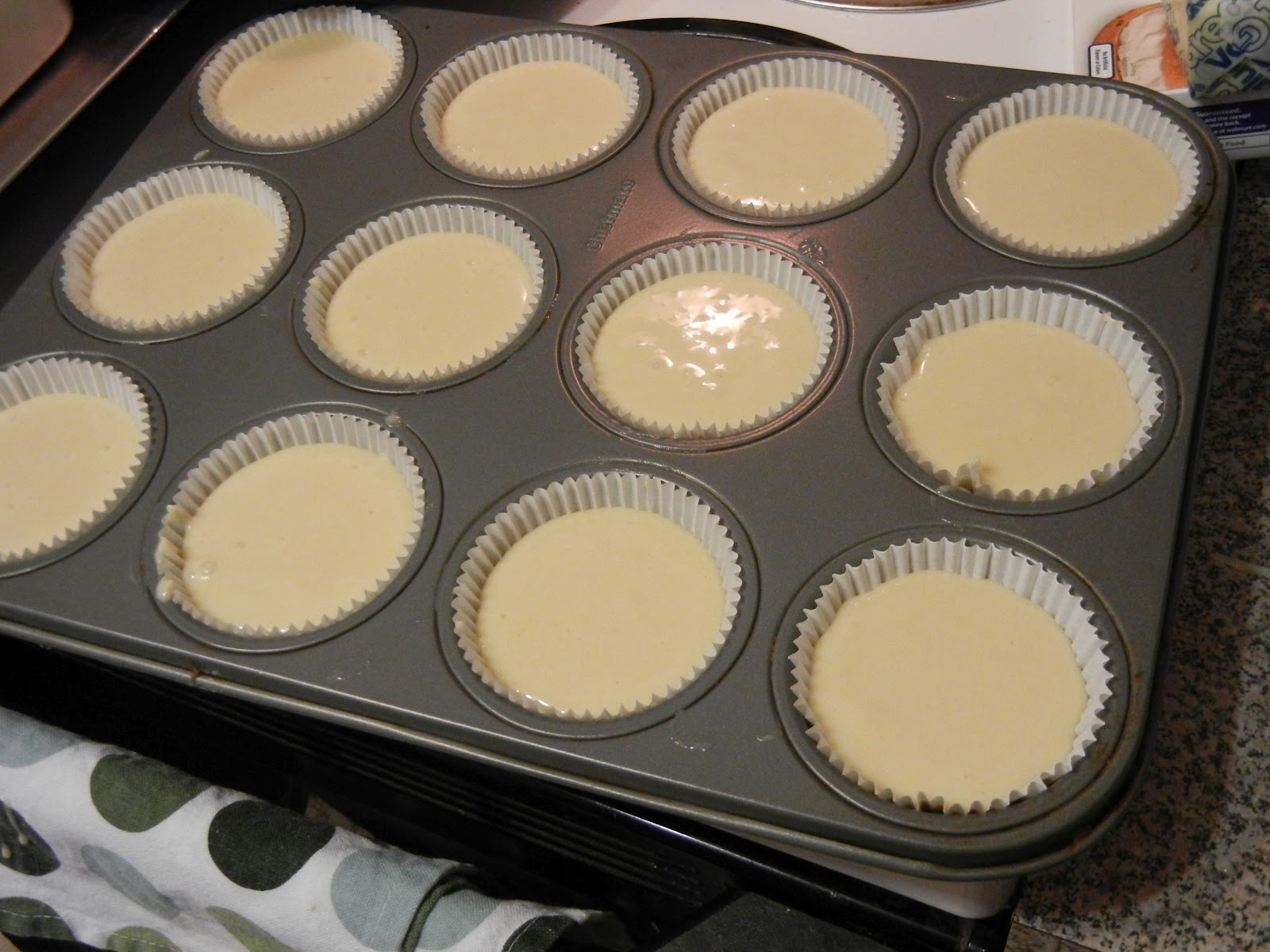 6. Divide the batter between the muffin pan cups. It should fill them all 3/4 of the way.