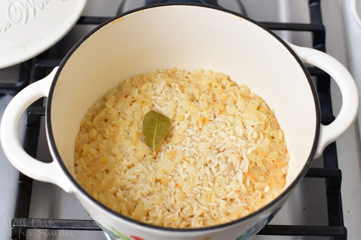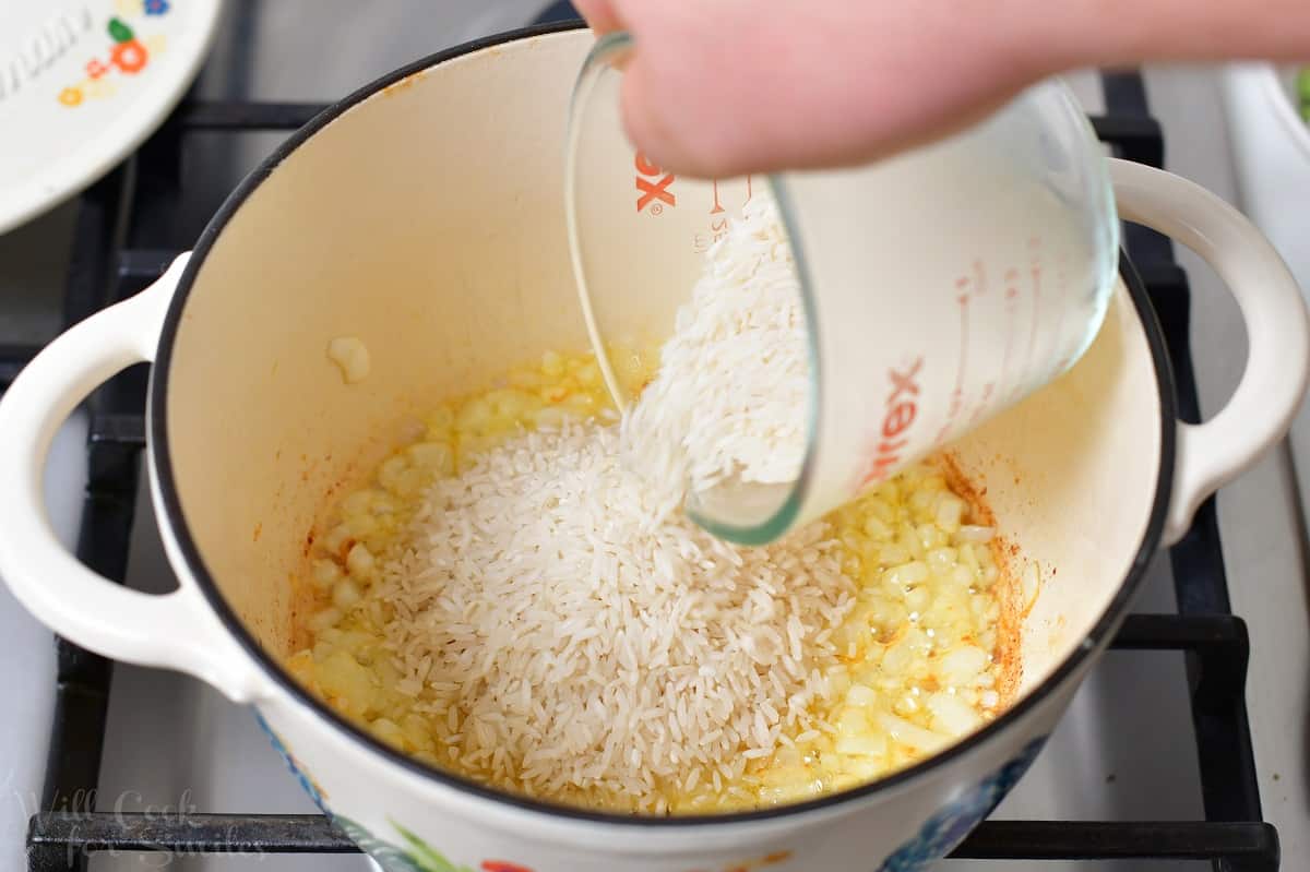 - Stir in the rice and continue to sauté for a few more minutes.