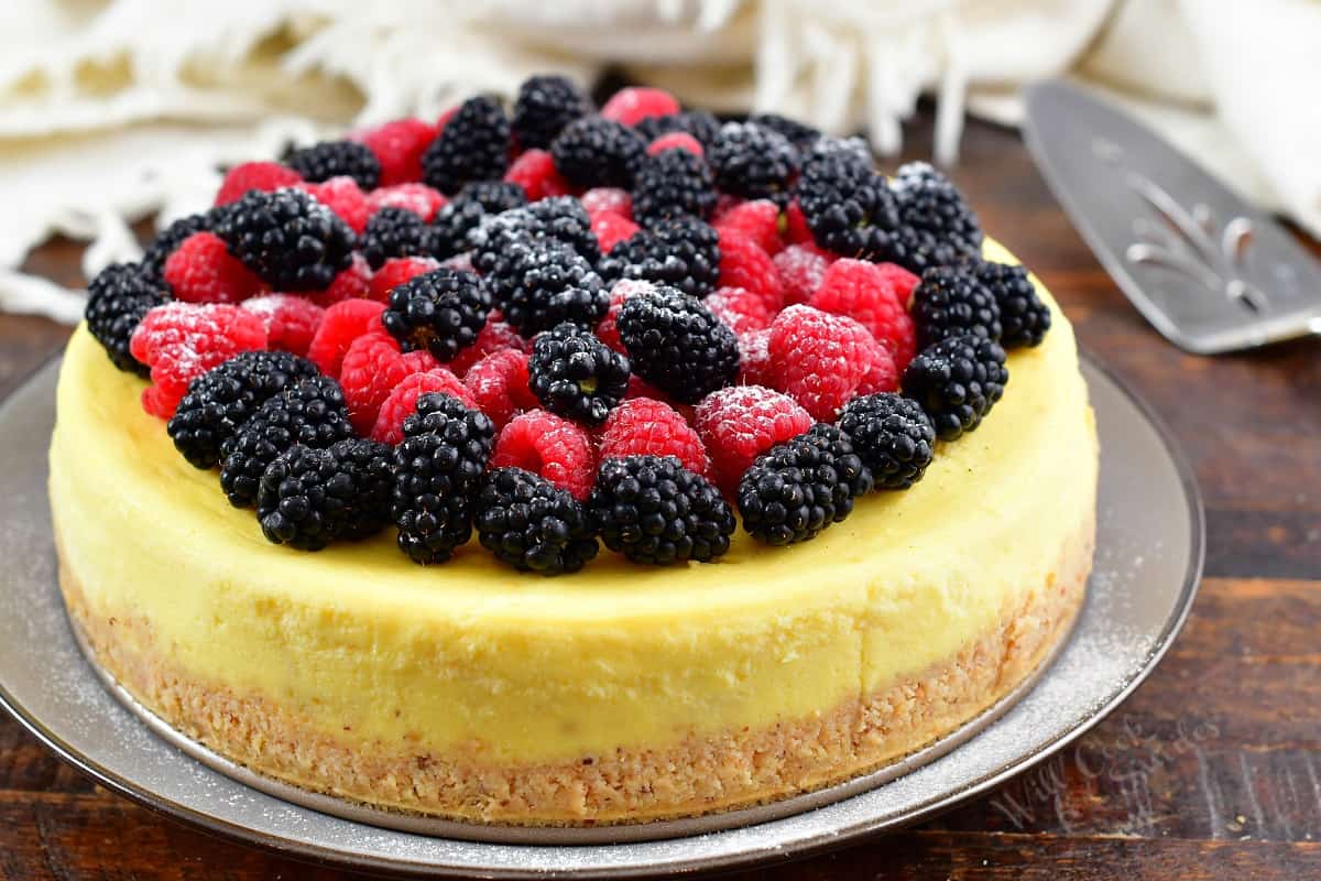 - You can decorate the cheesecake with fresh berries and powdered sugar.